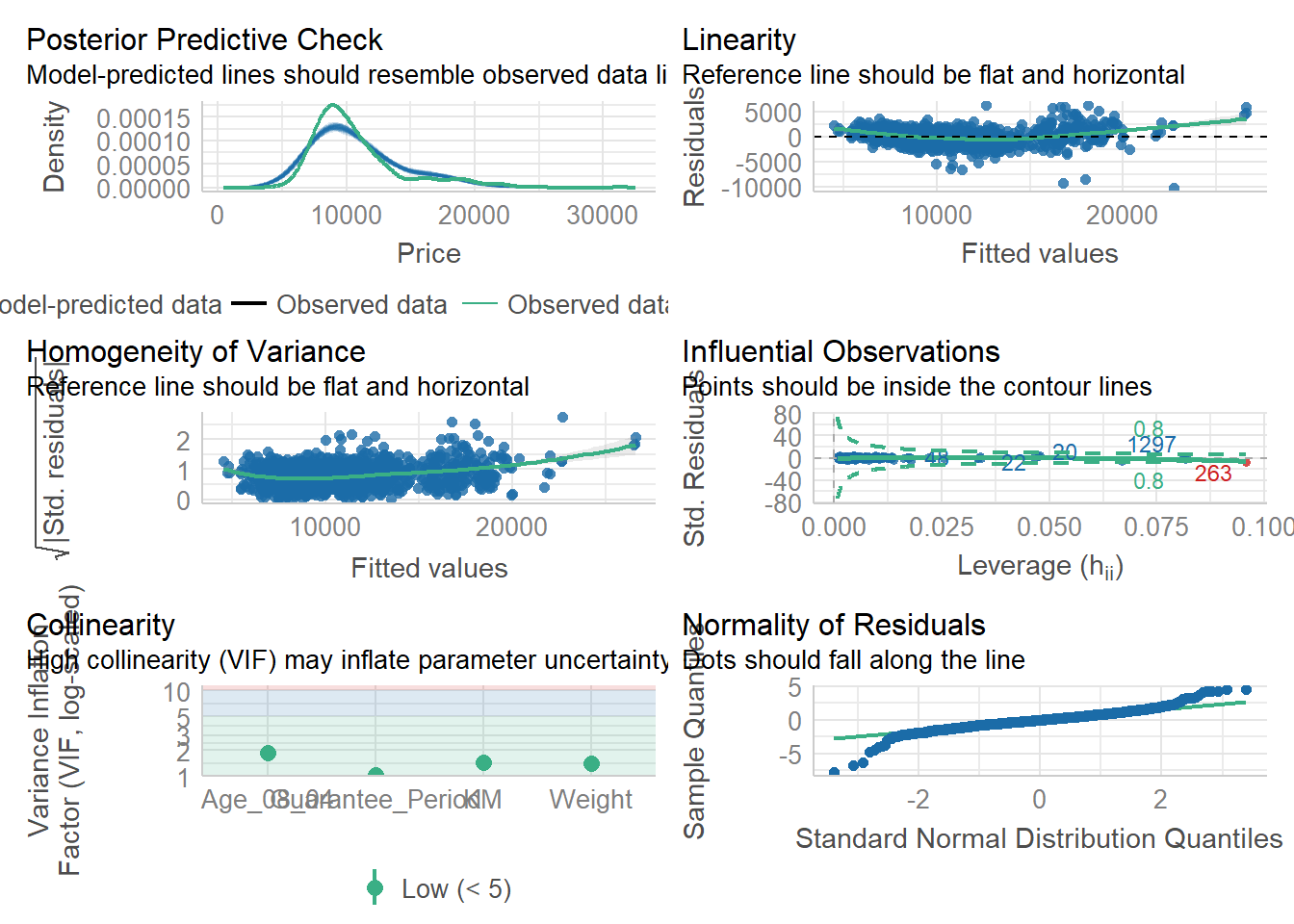 lm(formula = Price ~ Age_08_04 + Mfg_Year + KM + Weight + Guarantee_Period,