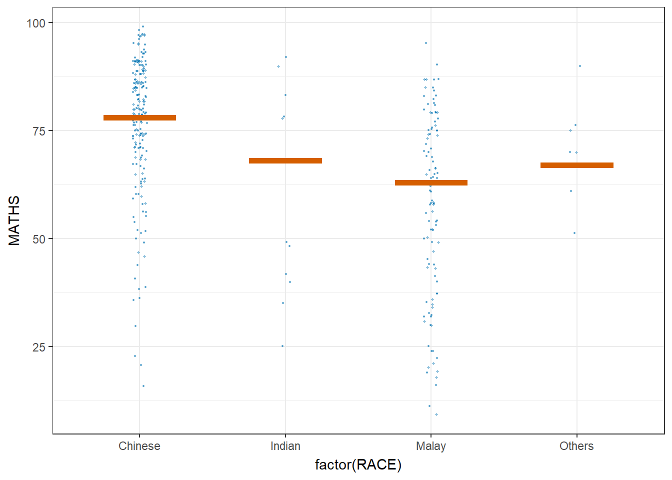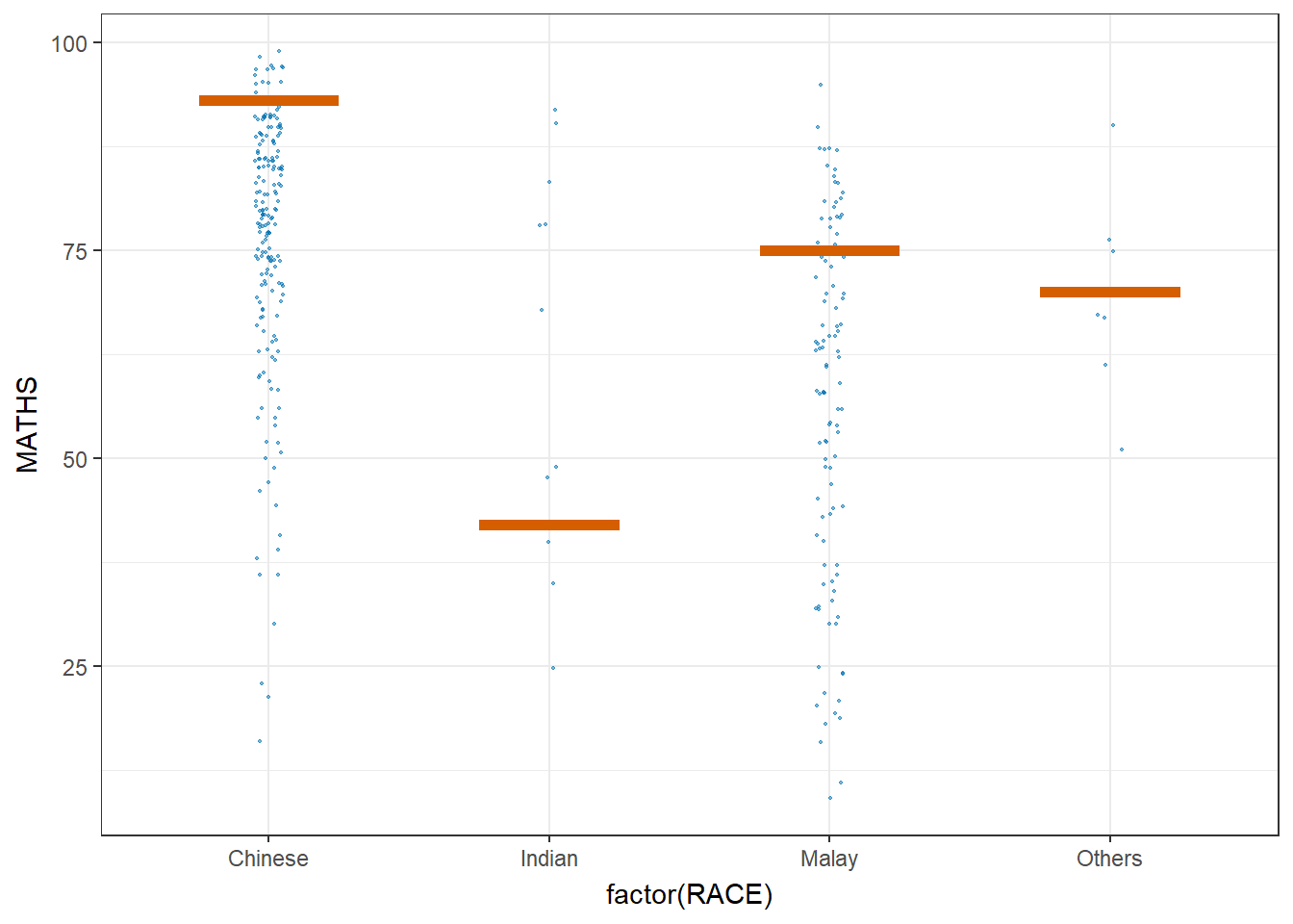 (aes(x = factor(RACE), y = MATHS))) +